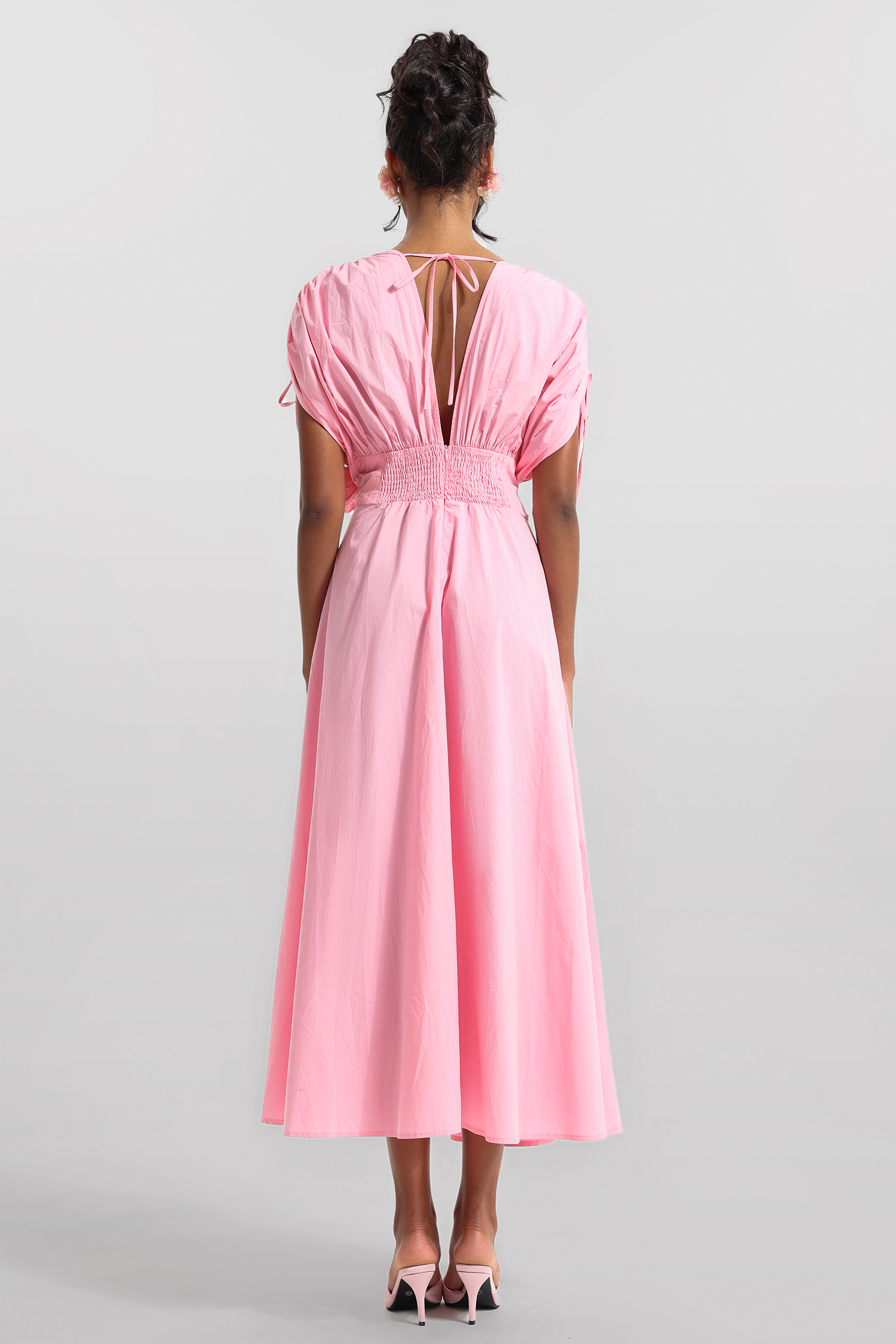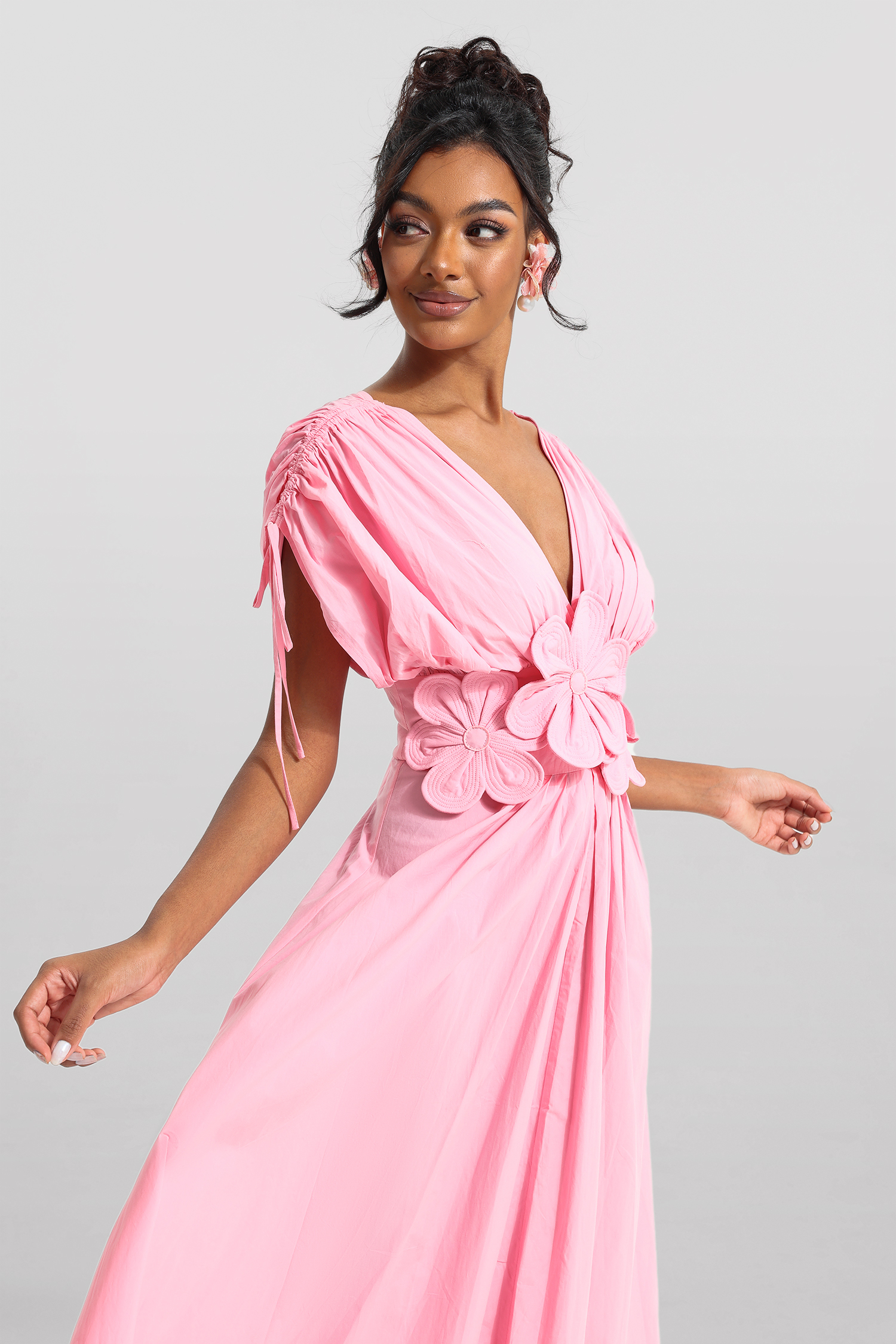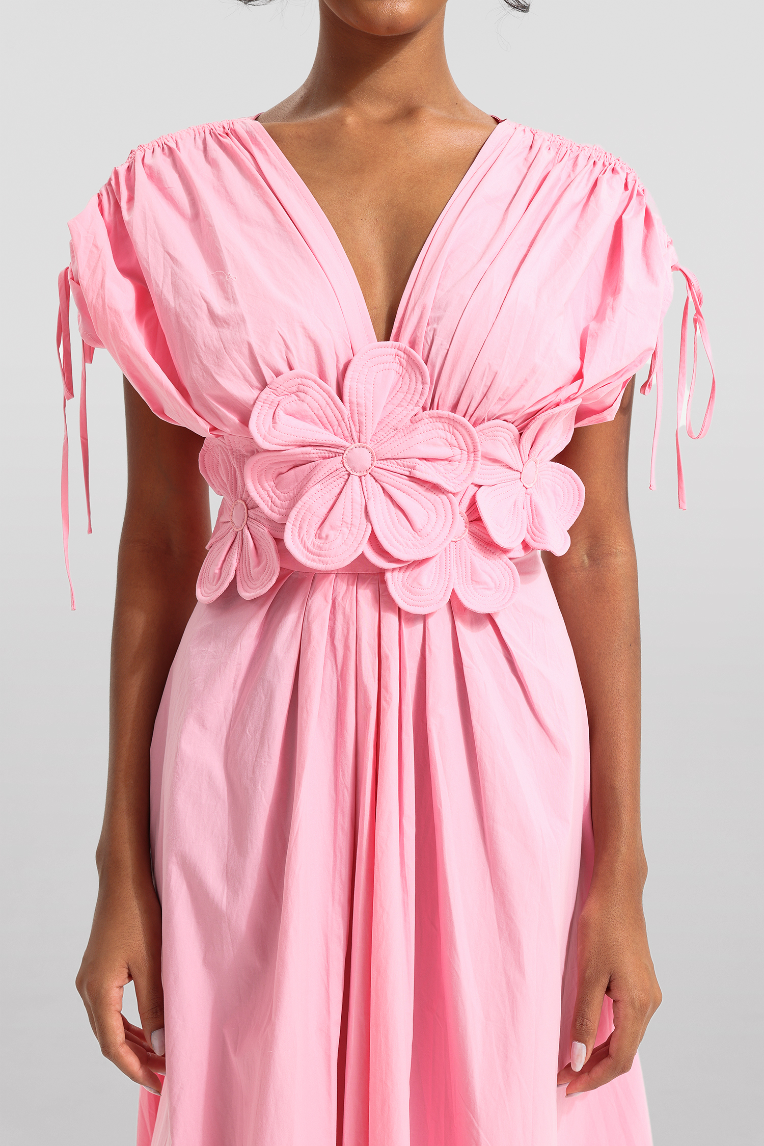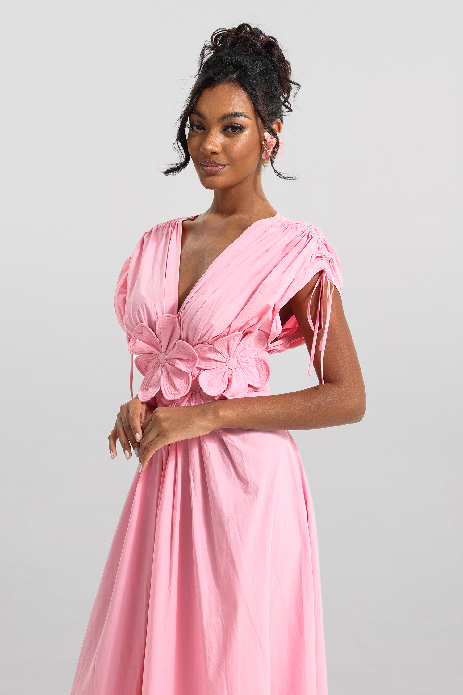 3D Floral V-Neck Lace Up Midi Dress