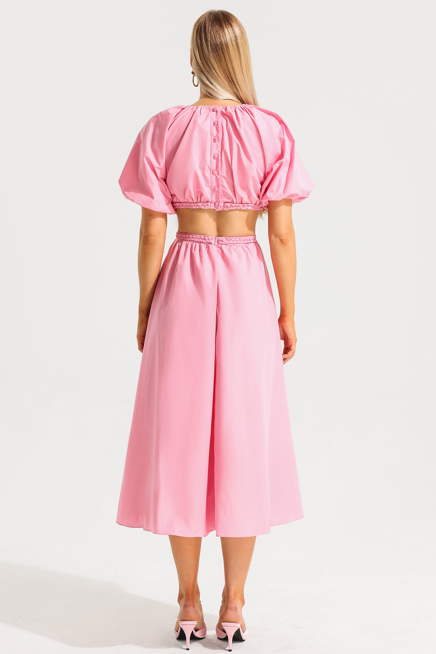 - Puff sleeve. cut-out. solid color. pleated