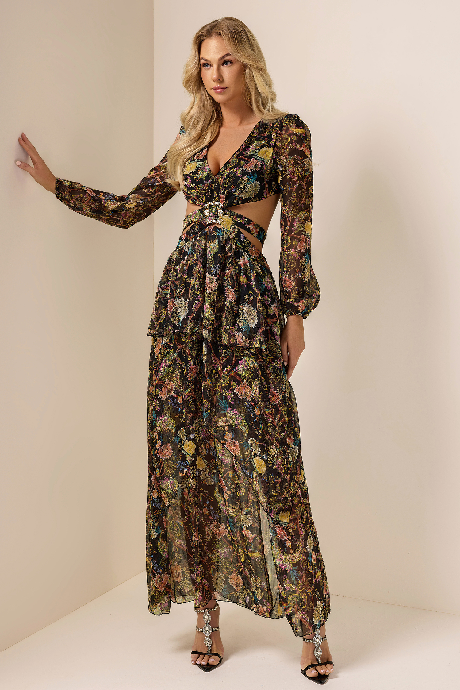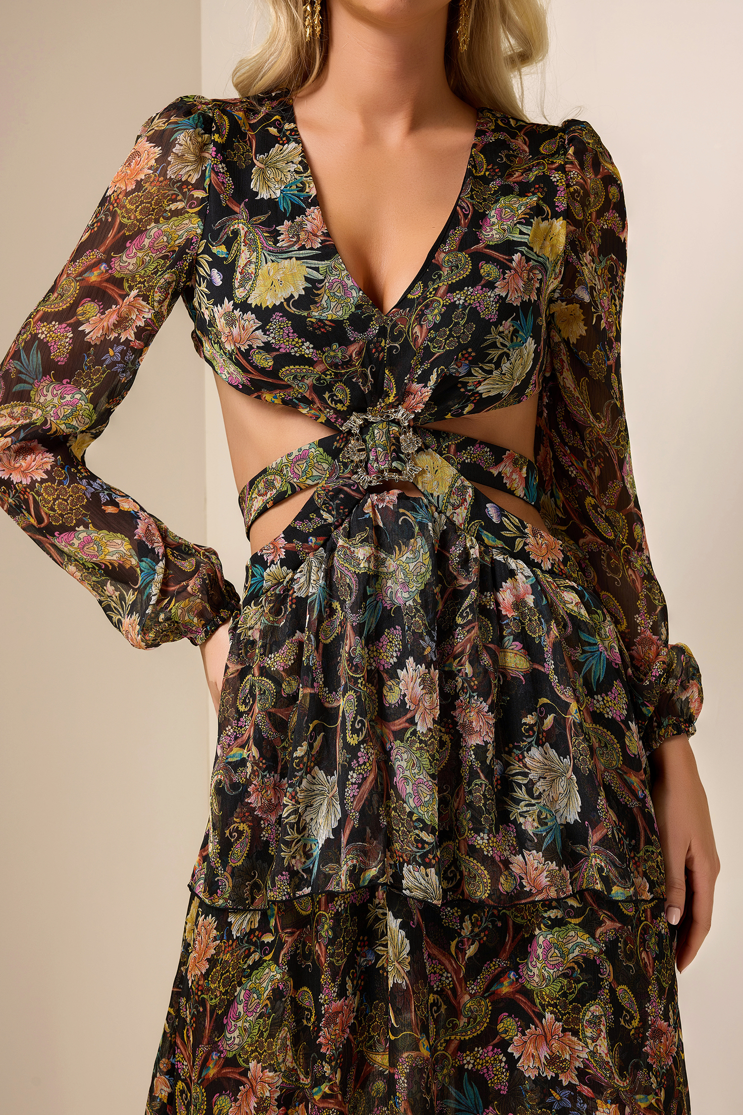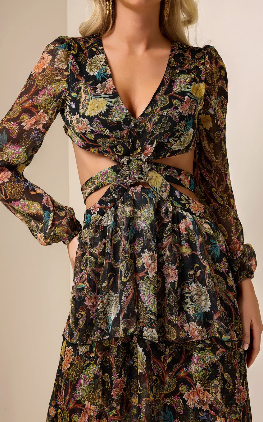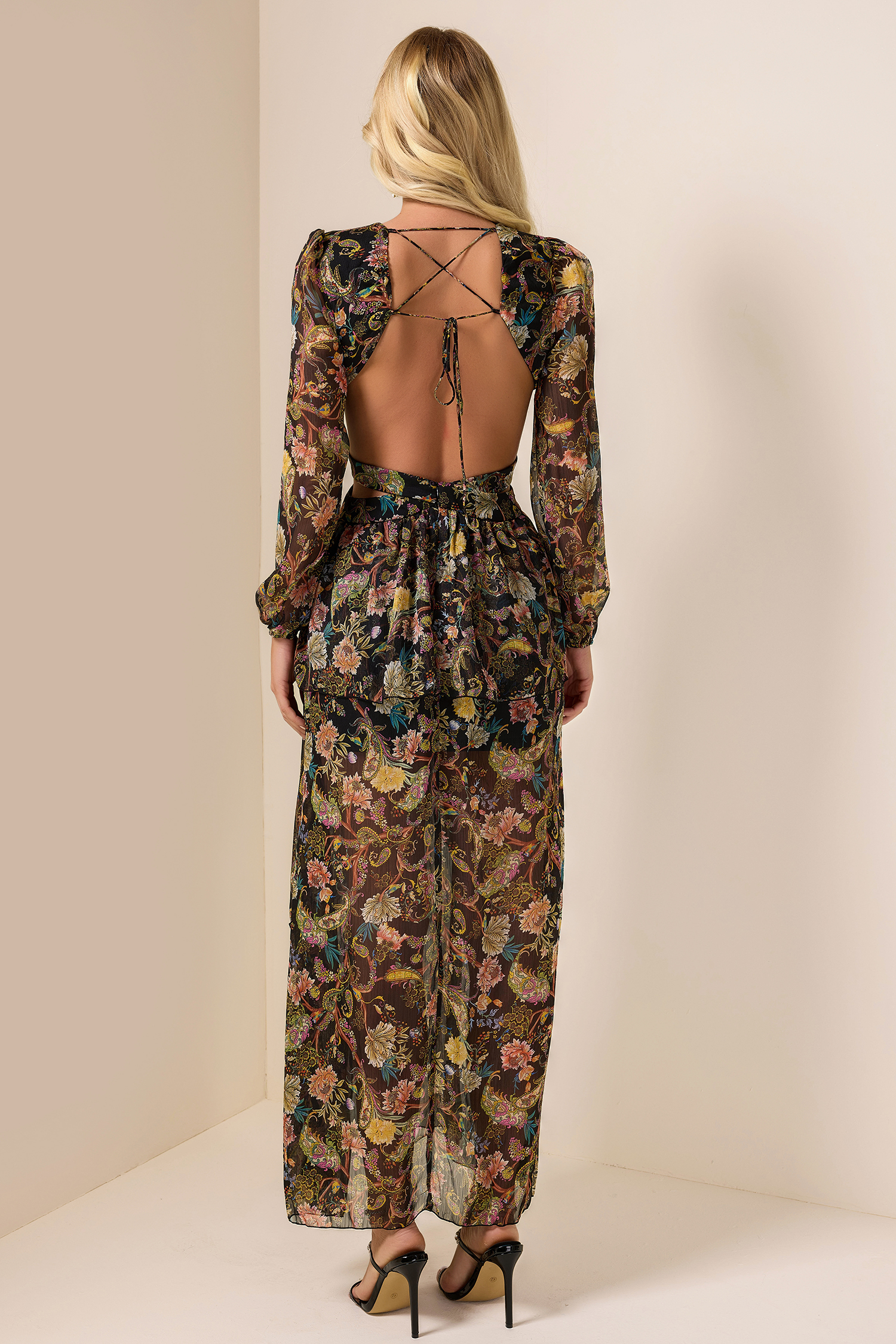 Chiffon Paisley Print Long Sleeve Midi Dress