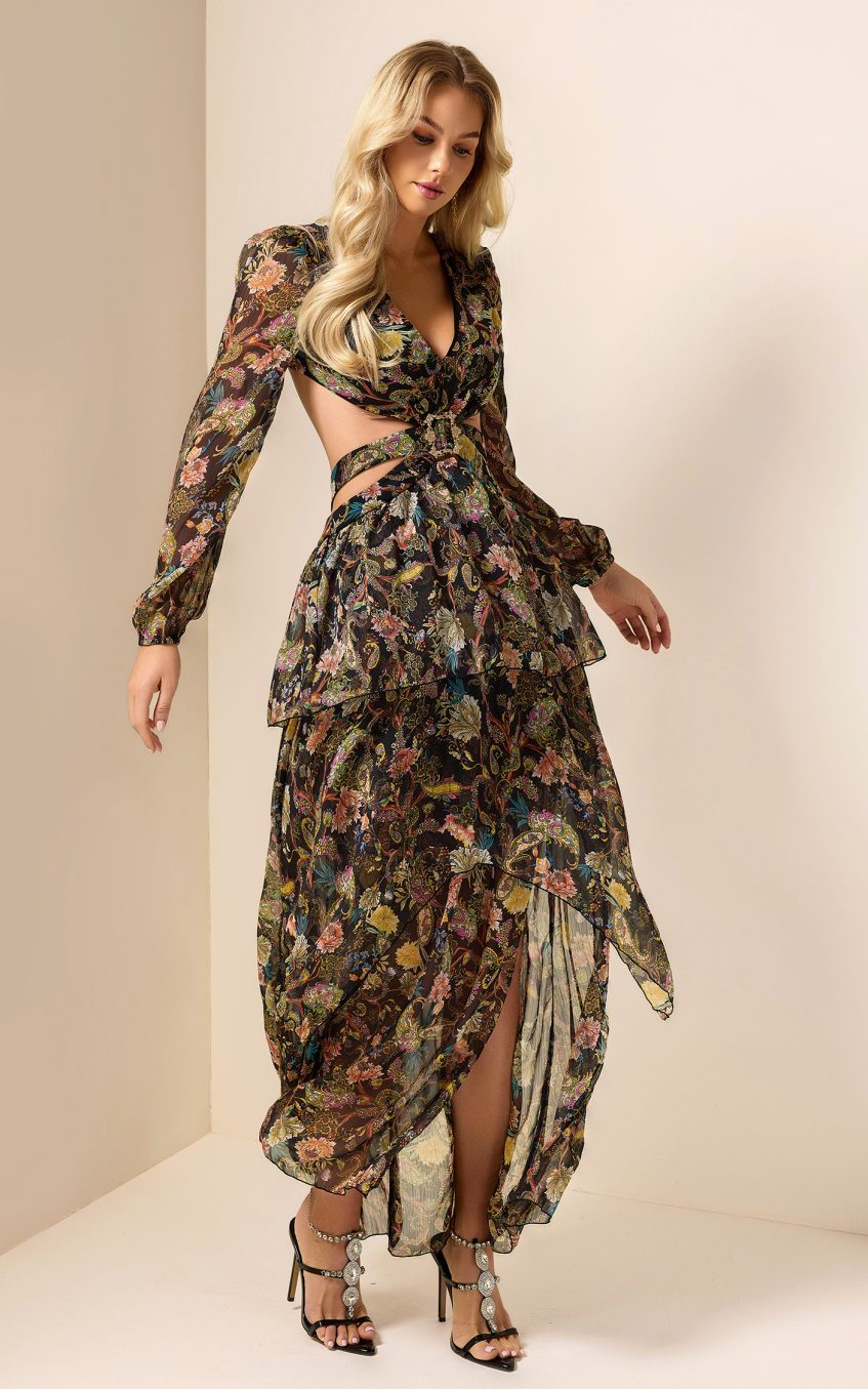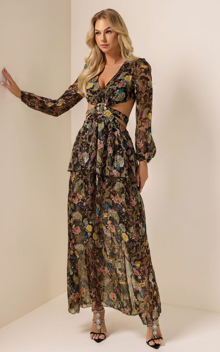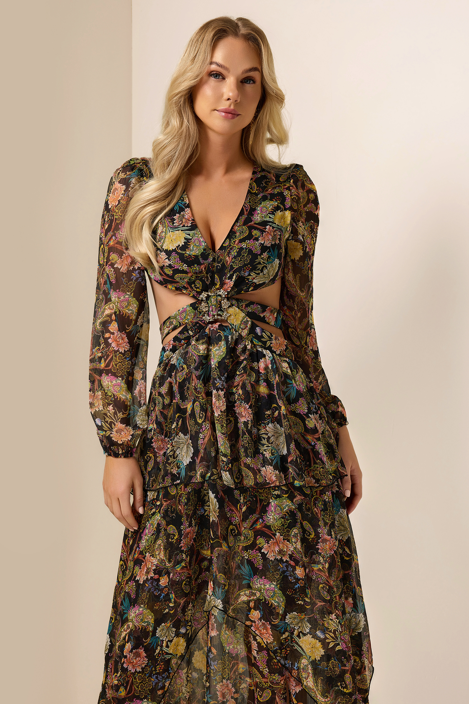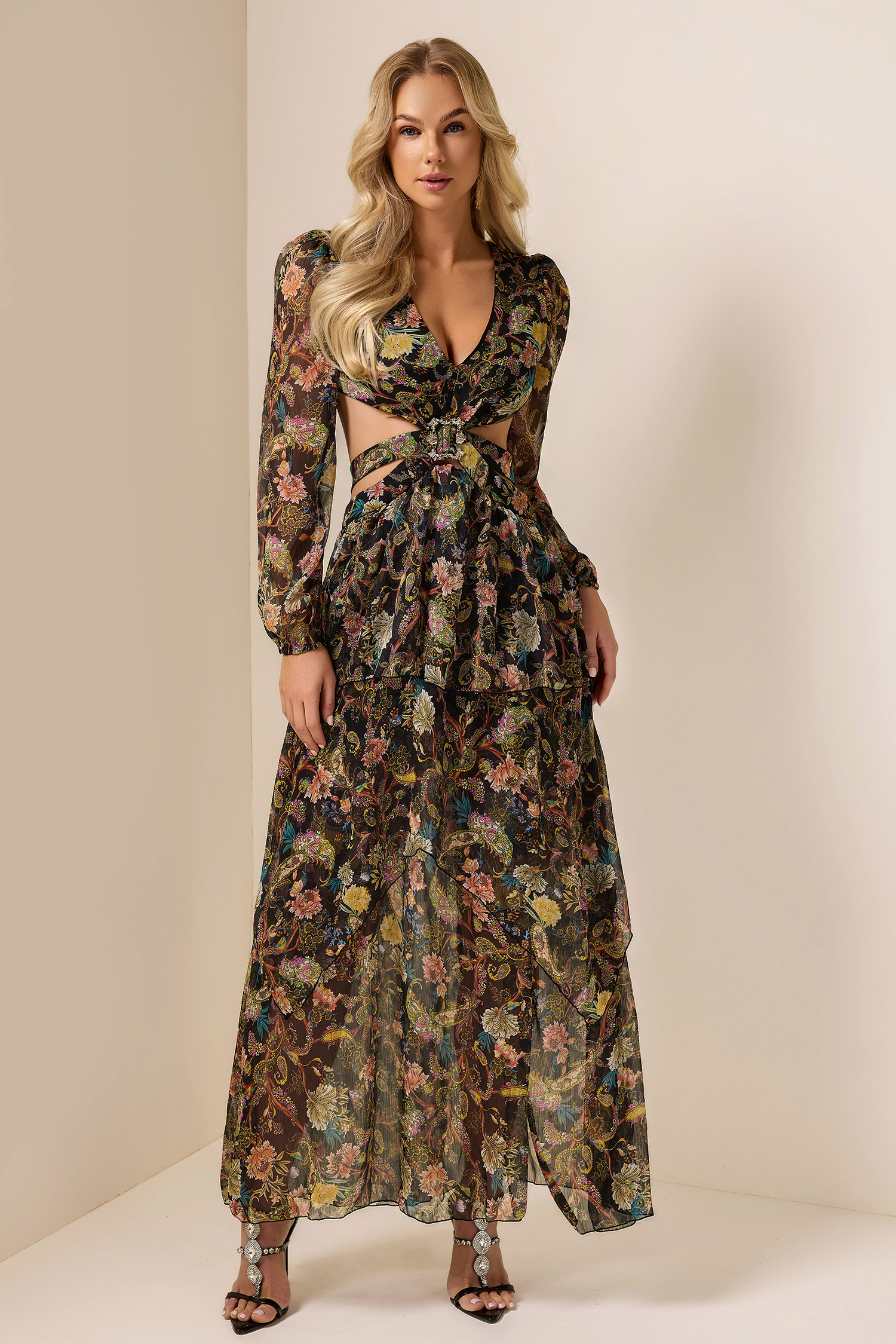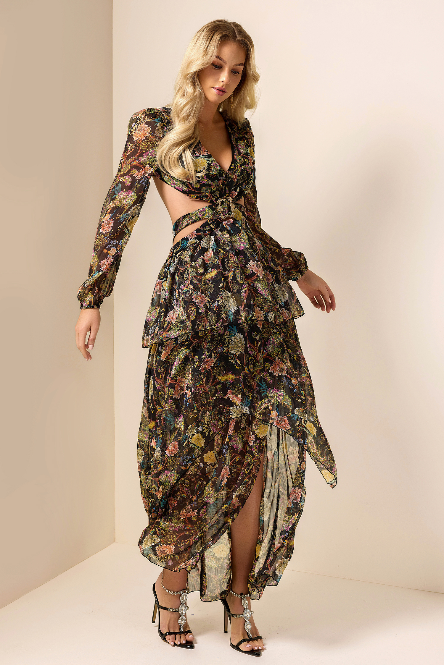 Chiffon Paisley Print Long Sleeve Midi Dress