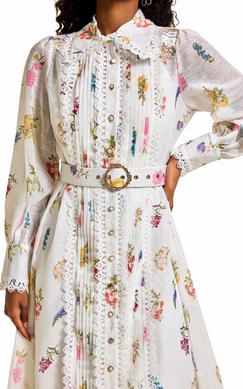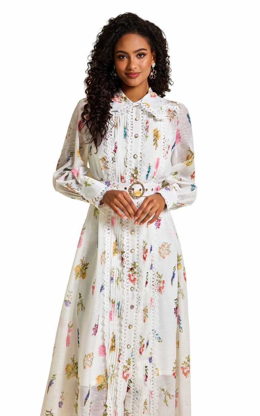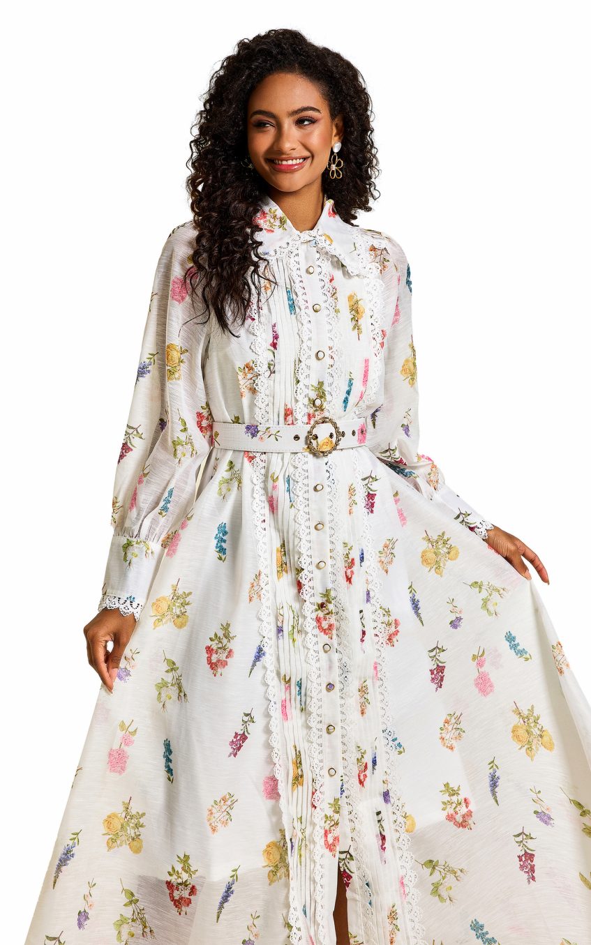 Floral Lace Lantern Sleeve Midi Dress