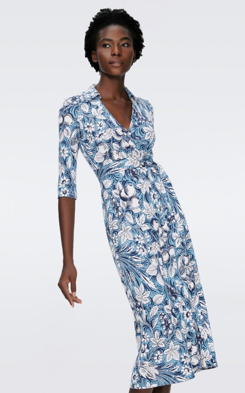 Tags: 202405, 20240513, Blue, date, Dress, E, floral printed, Lace up, mid sleeve, midi dress, summer, Vacation, Wrap