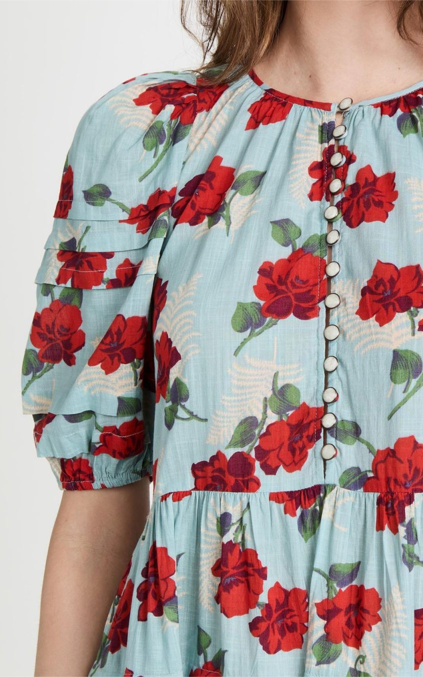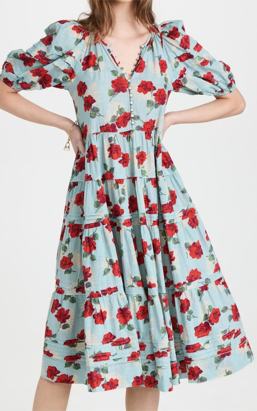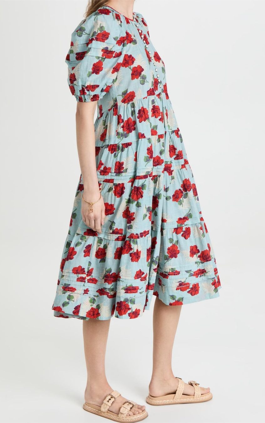 Tags: 0930E, 202406, 20240614, Blue, Dress, E, floral printed, mid sleeve, Midi, midi dress, Midi sleeve, picnic, pleated, Puff Sleeve, summer, Vacation