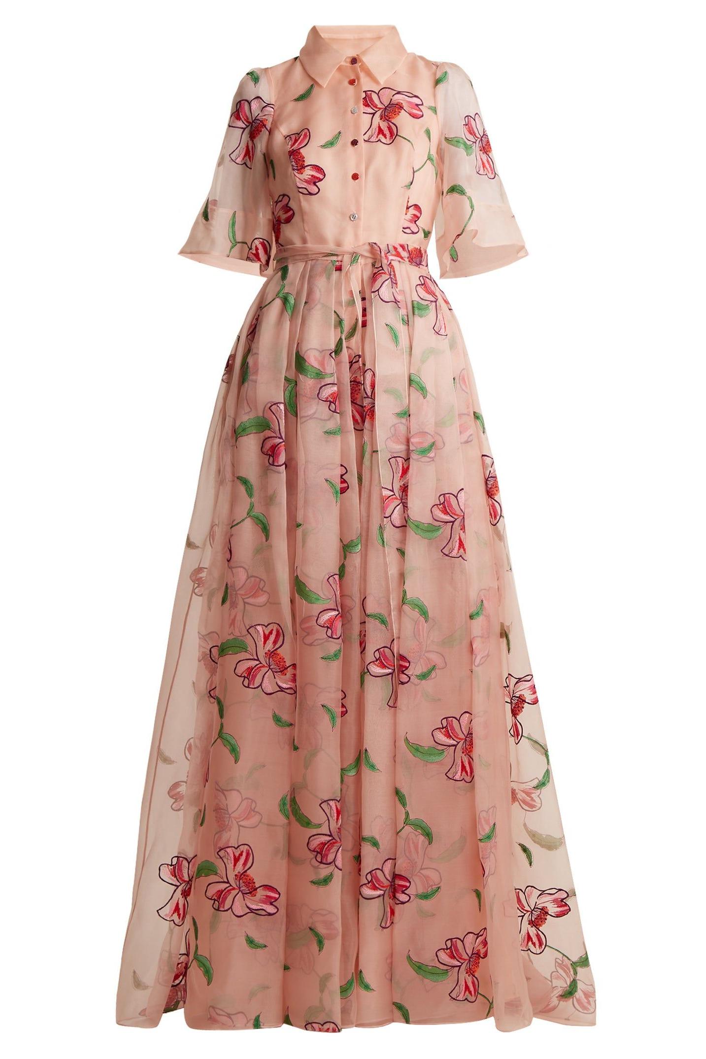 - Floral print. short sleeve. bottom. midi dress. pink