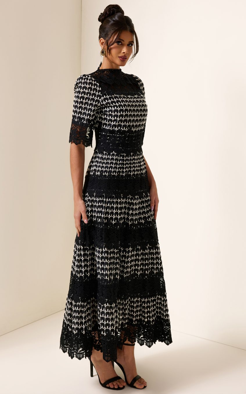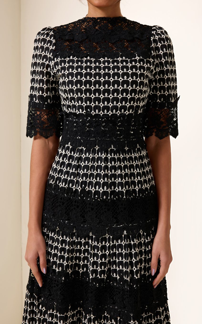 Lace Embroidery Short Sleeve Midi Dress