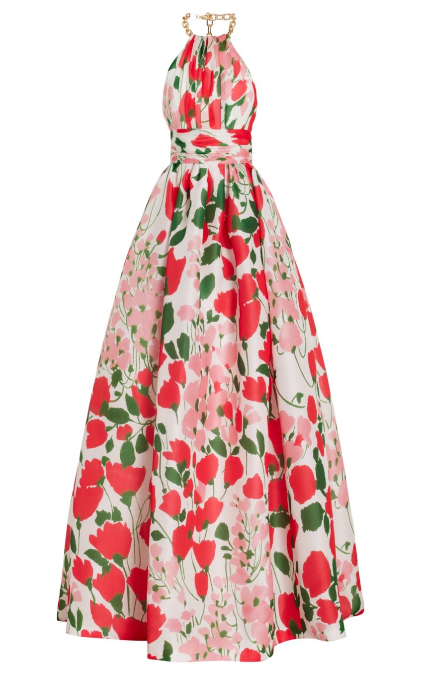 Metal Halter Neck Floral Maxi Dress
