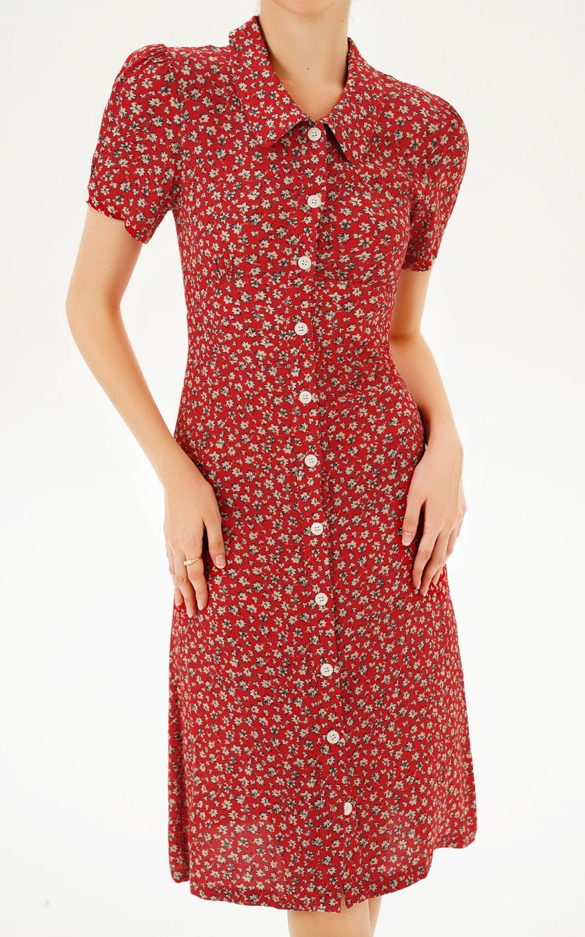 - Puff sleeve. lapel collar. buttoned. drapped hem