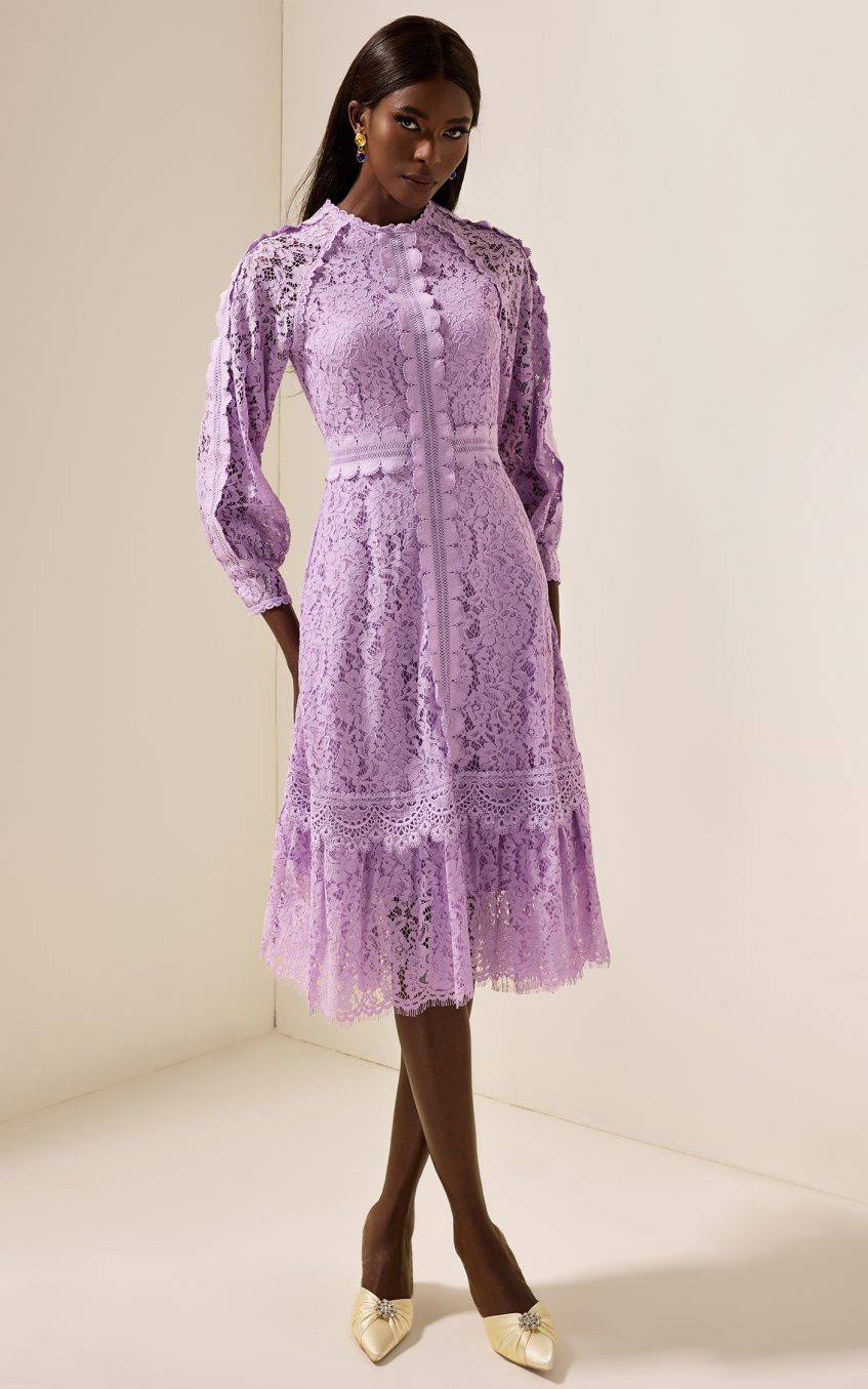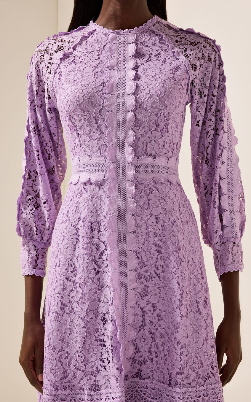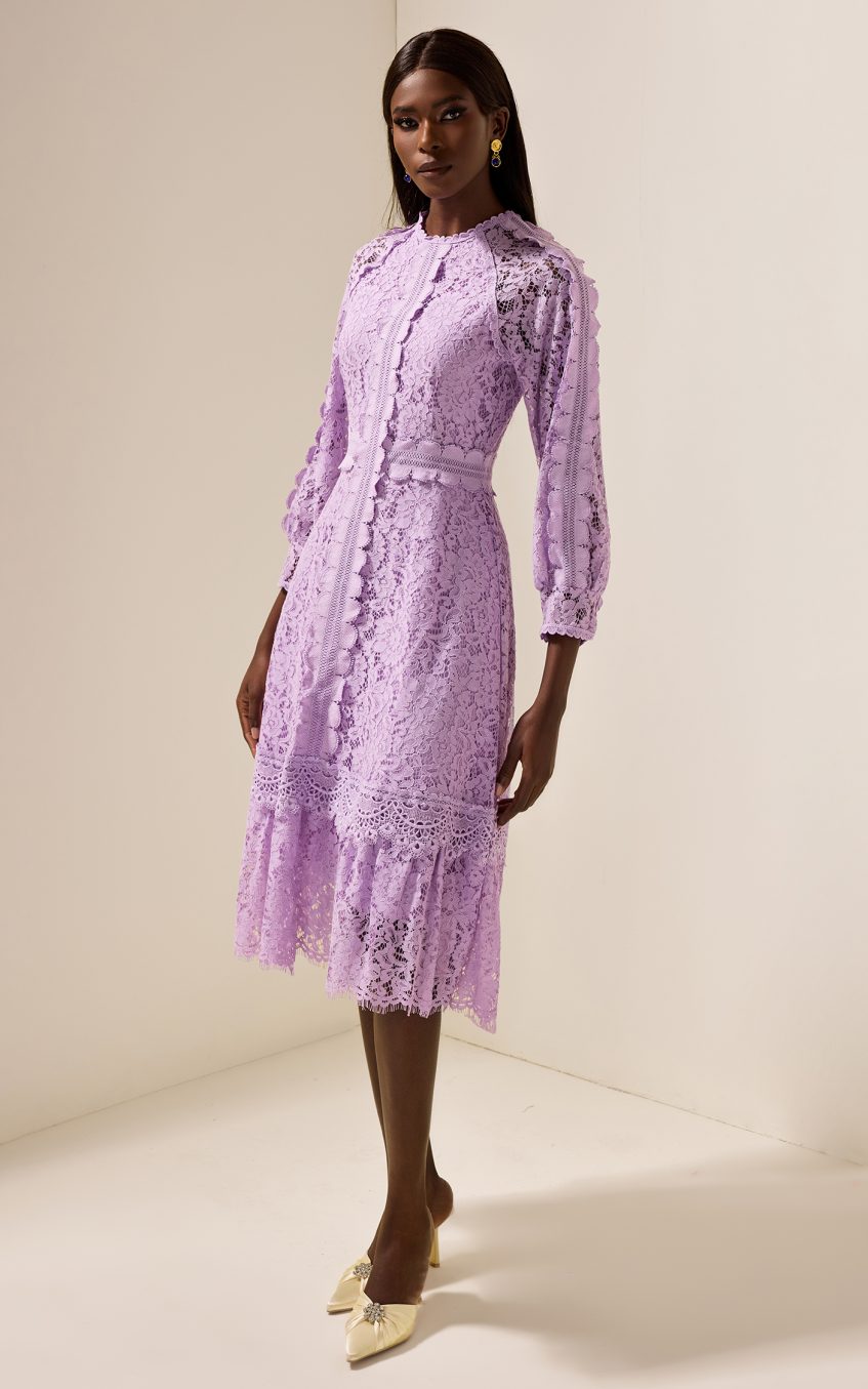 Solid Embroidered Frill Midi Dress